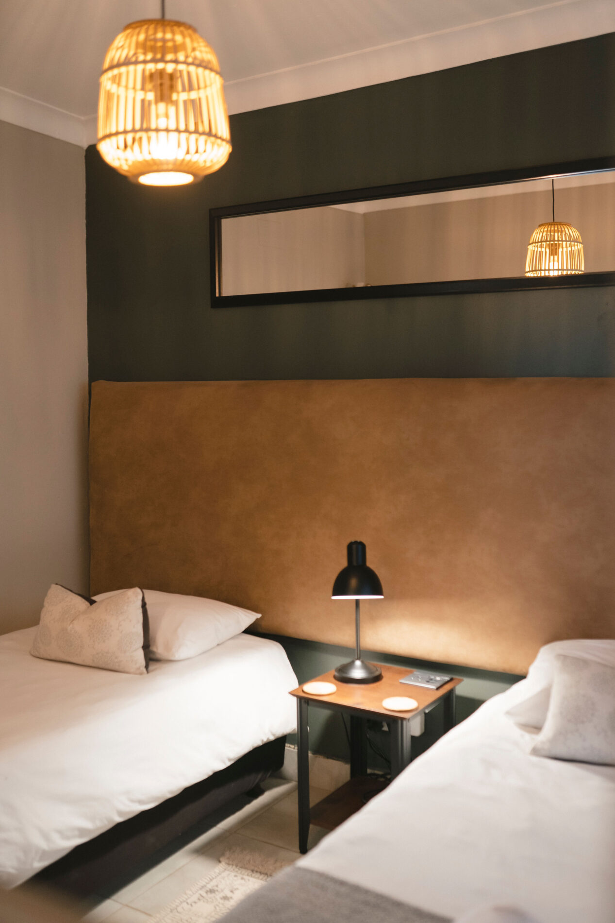 Modern and spacious 2-bedroom unit, one equipped with a queen size bed and another room with two twin beds with luxurious linen.