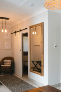 Luxurious linen and private outside entrance with seating area.